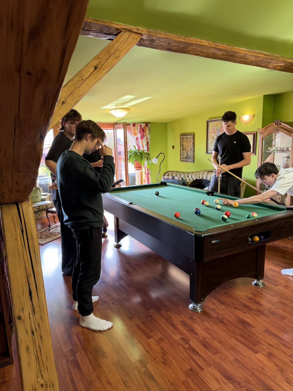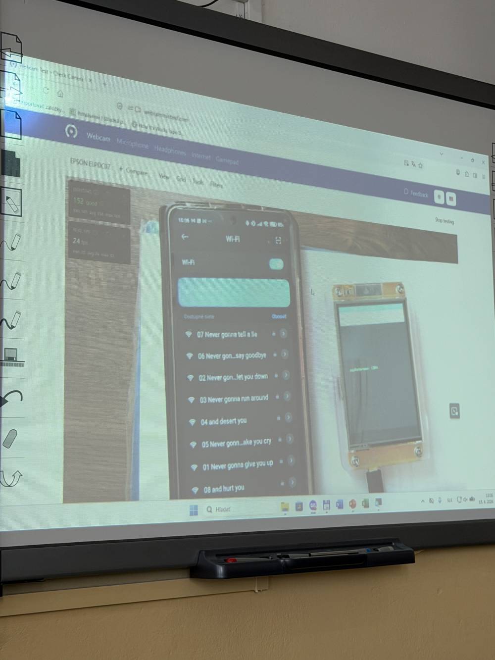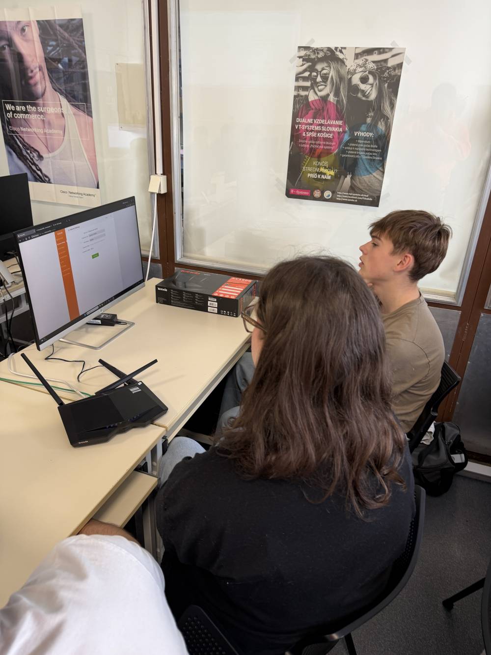 V sredo, 15. 4. 2026, smo elektrotehniki pouk začeli pri meritvah v elektrotehniki, kjer smo uporabljali program Multisim in v njem reševali pripravljeno nalogo. V nadaljevanju smo se pridružili pouku informatike, kjer smo skupaj s slovaškimi dijaki nameščali specializirano programsko opremo. Profesorica se je najprej udeležila pouka nemščine kot drugega tujega jezika, nato pa spremljala dijake pri ostalih urah pouka. Tehniki računalništva smo šolski dan začeli pri pouku kibernetske varnosti, kjer je bil poudarek na pomenu varnosti in zaščiti uporabnika. V zanimivem predavanju s praktičnim prikazom smo spoznali postopke pridobivanja gesel in podatkov uporabnika. Nato smo nadaljevali pri pouku računalniških omrežij, kjer smo konfigurirali usmerjevalnik Tenda ter v programu Cisco Packet Tracer vzpostavljali omrežje z več napravami. Profesor se je udeležil pouka kibernetske varnosti in računalniških omrežij, v nadaljevanju pa skupaj s profesorji stroke izmenjeval izkušnje o poteku mature in maturitetnih nalog. V popoldanskem času smo se ponovno srečali s slovaškimi dijaki ter se s tramvajem odpravili do »Laser tag« arene, kjer smo se pomerili v dvoboju mešanih ekip v dveh igrah. Po končanih igrah smo se odpravili še do bowling arene, kjer smo v prijetnem in sproščenem vzdušju nadaljevali druženje. Dan smo zaključili z večerjo tradicionalnih slovaških jedi, nato pa se v poznejših večernih urah zadovoljni vrnili v apartma.