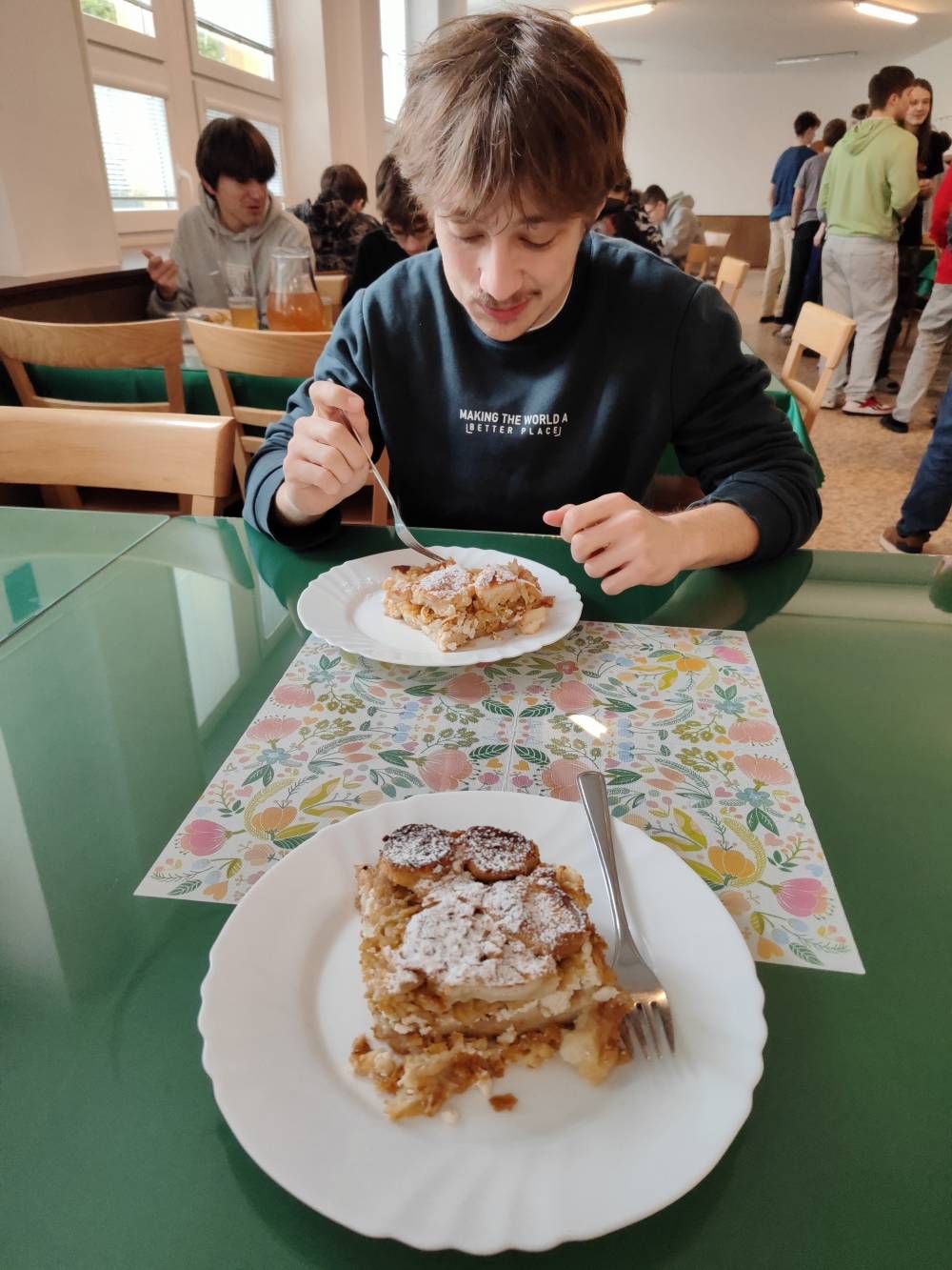 V nedeljo, 12. 4. 2026, smo se ob 9.00 odpravili na pot proti Košicam na Slovaškem, kamor smo prispeli po dobrih šestih urah vožnje. Ob prihodu nas je pri apartmaju sprejela koordinatorica Erasmus+ na naši šoli, profesorica Klavdija Cerovšek. Po namestitvi smo si vzeli čas za sprostitev ob igranju družabnih iger. V popoldanskih urah smo se odpravili do nakupovalnega centra Aupark, kjer smo poskrbeli za okrepčilo. Po krajšem sprehodu in sproščenem klepetu smo se vrnili v apartma. Dan smo zaključili z družabnim večerom, nato pa prijetno utrujeni odšli zaspali.
