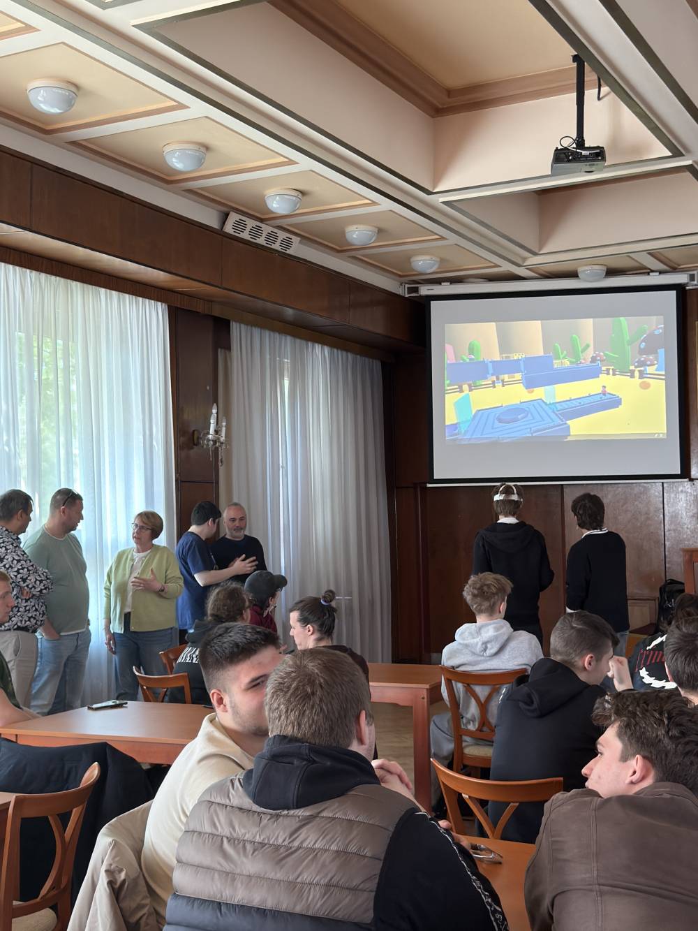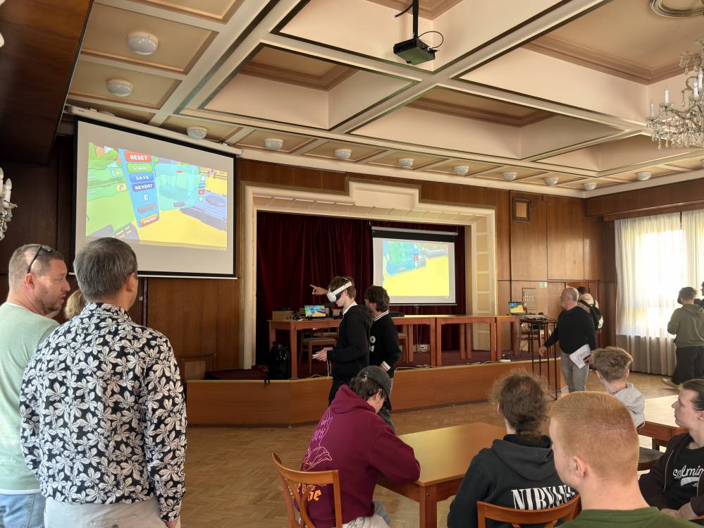 V petek, 17. 4. 2026, smo naš zadnji dan začeli zgodaj zjutraj, saj smo morali spakirati stvari in počistiti apartma. Po odhodu smo naložili kovčke v kombi in se še zadnjič odpravili v šolo. Tehniki računalništva smo s profesorjem prvi dve uri sodelovali pri pouku Linuxa, kjer smo konfigurirali VPN strežnik. Naslednji dve uri pa smo več kot sedemdesetim dijakom računalništva in elektrotehnike ter profesorjem SPŠE Košice predstavili aplikacijo Code in VR, razvito na SPTŠ Murska Sobota, ki so jo lahko tudi sami preizkusili. Predstavitve sta se udeležila tudi ravnatelj in podravnatelj šole, s katerima je profesor izmenjal nekaj besed o projektu, nad prikazanim pa sta bila zelo navdušena. Navdušenje nad virtualno resničnostjo in načinom učenja skozi reševanje izzivov je bilo izjemno – odzivi so bili zelo pozitivni, izkušnja pa za mnoge nekaj povsem novega. Elektrotehniki so se medtem udeležili pouka regulacij, kjer so dijaki merili napetost trifaznih sistemov in spoznavali premik faze. Nato so sodelovali še pri praktičnem pouku, kjer so z uporabo luksmetra merili svetilnost žarnic pri različnih razdaljah ter rezultate beležili v digitalni obliki. Profesorica se je udeležila pouka slovaščine, zgodovine, nemščine in angleščine. Po šolski malici smo se odpravili proti kombiju in začeli pot proti domu. Po daljši vožnji smo se vrnili na šolska tla Srednje poklicne in tehniške šole Murska Sobota.